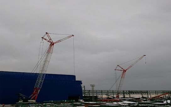 兩臺QUY260履帶吊完成廠房基礎建設最后吊裝工作,標志著哈銅項目圓滿竣工