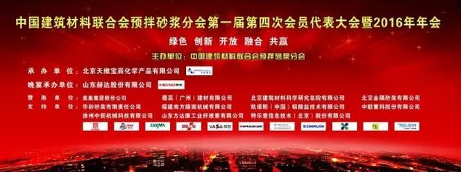 本次年會(huì),由北京天維寶辰化學(xué)產(chǎn)品有限公司承辦,并得到了美巢集團(tuán)股份公司、德高(廣州)建材有限公司、北京建筑材料科學(xué)研究總院有限公司、北京金隅砂漿有限公司的鼎力贊助,及華砂砂漿有限責(zé)任公司、福建南方路面機(jī)械有限公司、凱諾斯(中國)鋁酸鹽技術(shù)有限公司、中聯(lián)重科股份有限公司、徐州中新機(jī)械科技有限公司、山東方達(dá)康工業(yè)纖維素有限公司、特樂意信息(技術(shù))股份有限公司的大力支持。而本次年會(huì)的2016年度中國預(yù)拌砂漿行業(yè)年會(huì)答謝晚宴,由山東赫達(dá)股份有限公司獨(dú)家冠名贊助。