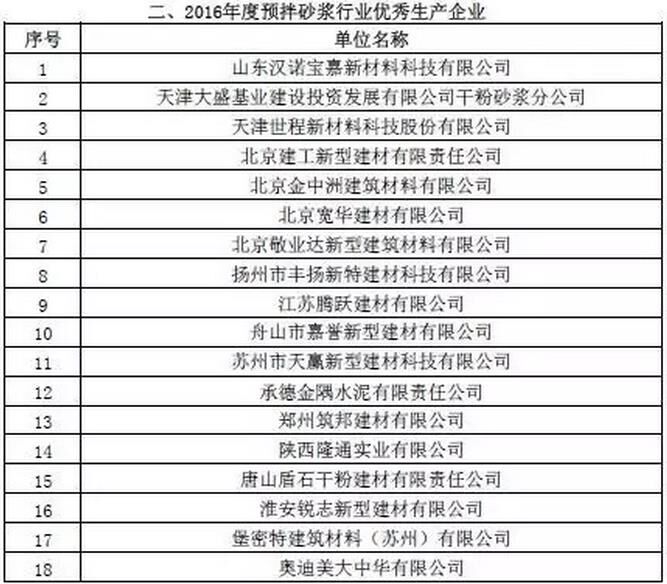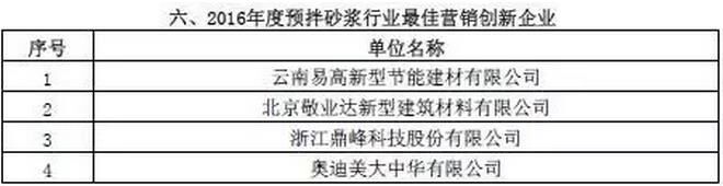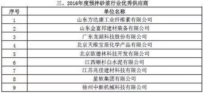 附:2016年度預(yù)拌砂漿行業(yè)表彰評比名單