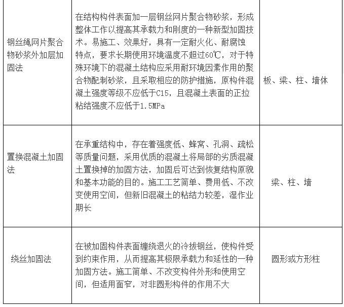 根據(jù)加固工程的特點(diǎn),加固設(shè)計(jì)除要求做到技術(shù)安全可靠、經(jīng)濟(jì)合理、施工簡便、確保質(zhì)量、環(huán)保節(jié)能并滿足使用要求。以上是小編為大家總結(jié)的混凝土結(jié)構(gòu)常用加固方法概況: