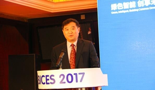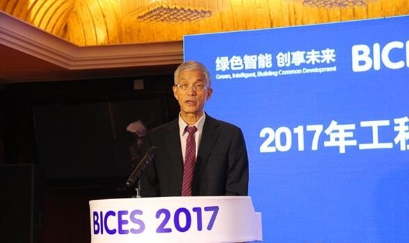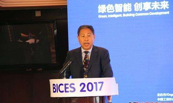 中國(guó)工程機(jī)械工業(yè)協(xié)會(huì)常務(wù)副會(huì)長(zhǎng)兼秘書(shū)長(zhǎng)蘇子孟做BICES 2017展會(huì)倒計(jì)時(shí)100天主題發(fā)言。
