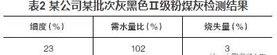 混凝土公司大多數(shù)使用的粉煤灰顏色與水泥相近,多呈灰色;也有部分粉煤灰顏色較深呈灰黑色,這種粉煤灰一般細(xì)度較細(xì)或含碳量較高。但總會(huì)發(fā)現(xiàn)一些深顏色的粉煤灰檢測(cè)結(jié)果與常理不符,如某公司某批次灰黑色Ⅱ級(jí)粉煤灰檢測(cè)結(jié)果見(jiàn)表2。