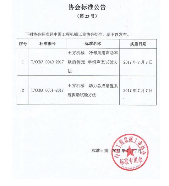 中國工程機械工業(yè)協(xié)會標(biāo)準(zhǔn)公告(第23號)
