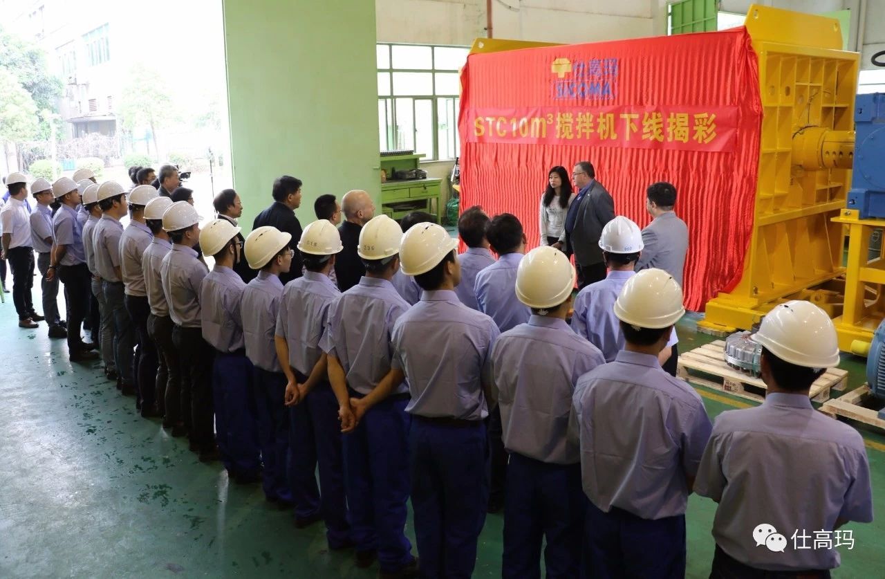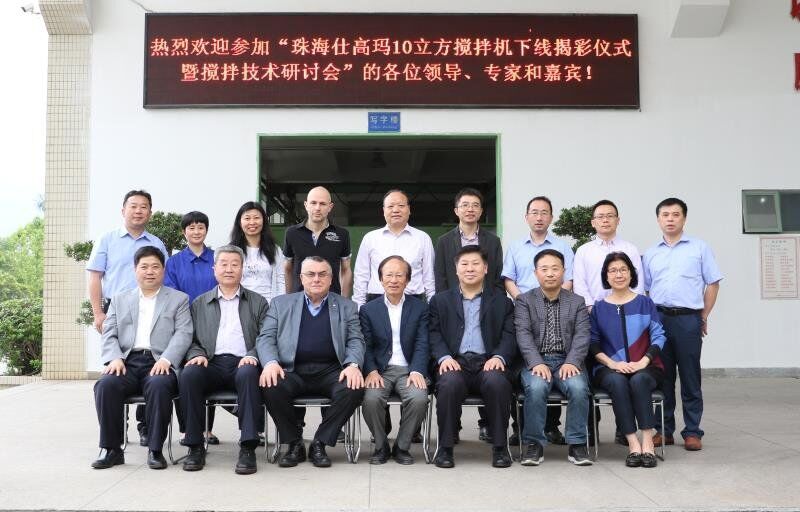 2018年4月18日,珠海仕高瑪公司10立方攪拌機(jī)下線揭彩儀式暨攪拌技術(shù)研討會(huì)在珠海仕高瑪公司舉行,中國(guó)工程機(jī)械協(xié)會(huì)混凝土機(jī)械分會(huì)符忠軒會(huì)長(zhǎng)、長(zhǎng)安大學(xué)馮忠緒教授、趙利軍博士、廣東長(zhǎng)大公路工程公司楊東來(lái)總工程師、河南萬(wàn)里路橋李冠峰總工程師、許昌德通特種混凝土公司孟超總經(jīng)理等領(lǐng)導(dǎo)、專(zhuān)家和嘉賓應(yīng)邀出席儀式和研討會(huì),珠海仕高瑪公司股東黃志輝先生、意大利SICOMA公司董事長(zhǎng)Mr. Galletti、總工程師Marco、珠海仕高瑪公司總經(jīng)理郗俊峰先生、財(cái)務(wù)總監(jiān)唐志敏女士及公司技術(shù)研發(fā)團(tuán)隊(duì)、生產(chǎn)團(tuán)隊(duì)、銷(xiāo)售團(tuán)隊(duì)、售后團(tuán)隊(duì)參加本次活動(dòng)。