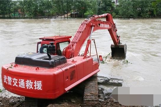 裝載機(jī)和挖掘機(jī)不停挖土并傾倒在河床上,山頂滑下來的巨石被填筑在路基邊坡,加固道路,保障安全,推土機(jī)在后方盡量推平直到可以供車輛行人行走,這是一幅抗洪救災(zāi)現(xiàn)場(chǎng)最常見的畫面,通力合作的除了武警官兵和救援人員們,就屬這些工程機(jī)械設(shè)備最為搶眼了。