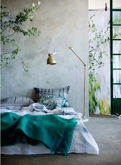 被水泥包裹的臥室,本來是很生硬冰冷的,綠植與床品的巧妙搭配,讓這個(gè)空間煥發(fā)出大自然的氣息。