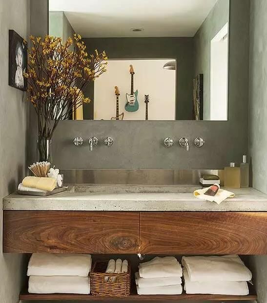 一眼就愛上這個(gè)洗漱空間,水泥與木質(zhì)竟然搭配地如此完美。
