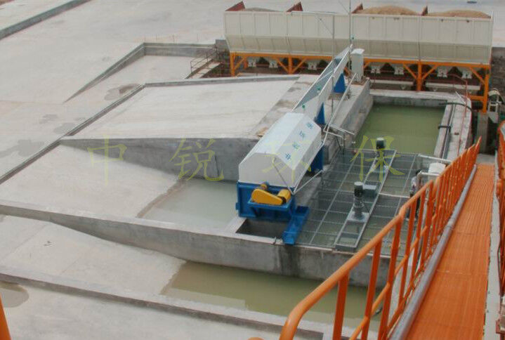 該系統(tǒng)主要由:攪拌車加水清洗裝置,溜槽輸送裝置,砂石漿水分離裝置,和泥漿水后處理裝置組成。混凝土輸送設(shè)備清洗后,將殘余混凝土排入溜槽中,在高壓水流沖擊下,經(jīng)溜槽進入砂石分離機,在不斷旋轉(zhuǎn)的分離機作用下,對混凝土進行充分的清洗,同時將砂、石進行分離,分離后的砂、石在導(dǎo)料葉片的作用下背向流動,再通過提升式出料口排出分離機,分別堆放。清洗后的漿水從分離機的底部排出進入沉淀池逐級沉淀后循環(huán)使用或進入攪拌池回收利用。進入攪拌池(一般情況2個攪拌池)的漿水為了防止沉淀凝固,需通過攪拌器的作用,攪拌器的工作為間歇式。分離出水泥漿在連續(xù)的攪拌器作用下,再通過高壓污水泵輸送到攪拌樓中待生產(chǎn)計量再利用。整個控制系統(tǒng)設(shè)有手動和自動控制,方便控制設(shè)置,整個系統(tǒng)運行可靠,故障率低,維護量少等特點。