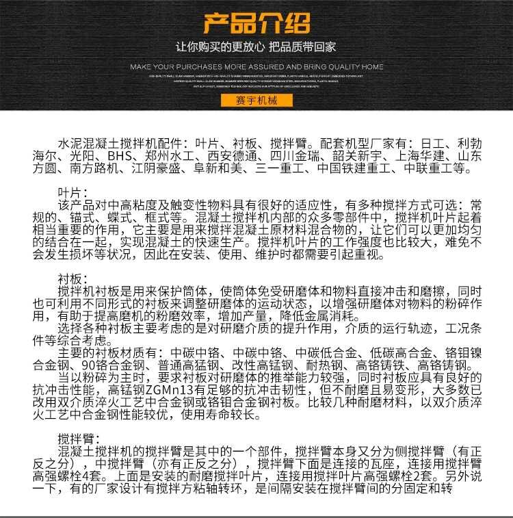 歸屬行業(yè):仕高瑪120站2方攪拌機葉片襯板攪拌臂原廠配件