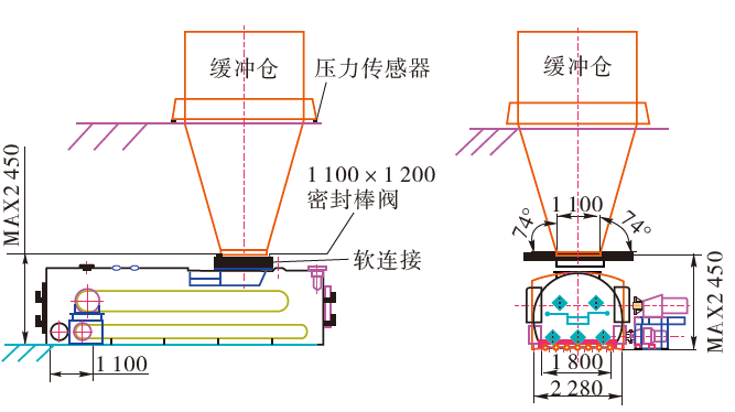 ⑤增加重量傳感器作為料封的基礎,當物料在倉內黏附,容易誤導稱重傳感器,造成密封效果差,當物料濕度進一步加大,則誤導更厲害,基本失去密封效果。