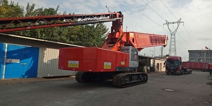 混凝土澆筑的快慢,一直是困擾建筑業(yè)施工周期的重要因素,根據(jù)不同的施工需求,可以選擇拖泵、車載泵或者是泵車來完成混凝土最后的澆筑工作。但是,目前來說,即便是大排量的混凝土泵車,其實際的泵送混凝土的速度也是有限的,而且按照現(xiàn)階段泵車的技術(shù)來說,要想提高其泵送速度也很難實現(xiàn)。針對這個問題,我公司研發(fā)的伸縮式混凝土布料機(jī),就大大提高了混凝土的澆筑速度。其中60米長伸縮式移動布料機(jī)是國內(nèi)較大的履帶伸縮式皮帶輸送機(jī)。