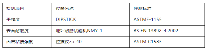 參評項(xiàng)目包括混凝土面層地坪、水泥砂漿面層地坪、整體樹脂地坪系統(tǒng)三大類(下分13種細(xì)分地坪)。“WOCA 地坪獎(jiǎng)-亞洲賽區(qū)”(WOCA AWARDS)執(zhí)行國際先進(jìn)的檢測檢驗(yàn)標(biāo)準(zhǔn),對候選項(xiàng)目進(jìn)行現(xiàn)場性能檢測,依據(jù)三個(gè)維度——平整度(FF/FL Testing)、表面耐磨度(BCA Abrasion Testing)、面層粘接強(qiáng)度(Pull-off Adhesion Testing)的測評數(shù)值加權(quán)系數(shù)后得出最終分?jǐn)?shù)進(jìn)行評選。