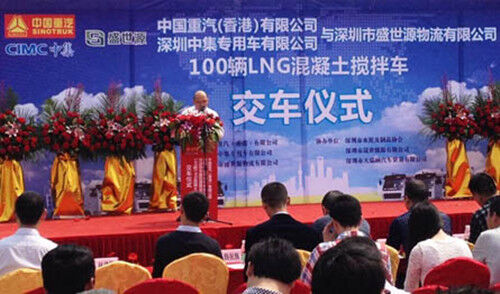 這批100輛LNG的大訂單,是深圳市首次大批量進(jìn)入的LNG攪拌車,由深圳市晟世能源有限公司和深圳市盛世源物流有限公司聯(lián)合投資,將采用LNG撬裝加氣站方式,為前海片區(qū)的混凝土攪拌站提供第三方物流服務(wù)。盛世源物流董事長劉宇明說,之所以選擇中國重汽的LNG水泥攪拌車,一則是處于對中國重汽LNG卡車技術(shù)的信賴,二則是因?yàn)榈胤秸畬ζ髽I(yè)使用環(huán)保車輛給予大力支持。