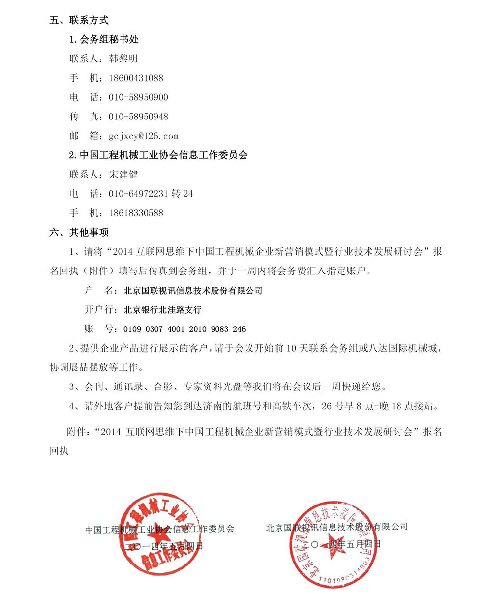 關(guān)于召開“2014互聯(lián)網(wǎng)思維下中國工程機(jī)械企業(yè)新營銷模式暨行業(yè)技術(shù)發(fā)展研討會”的通知